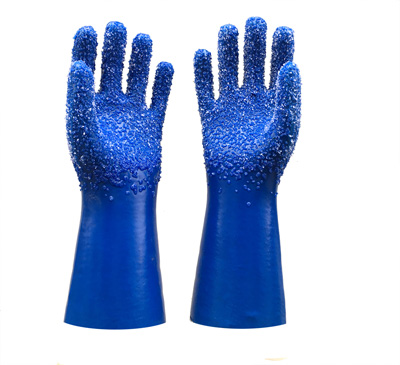 Blaue PVC weiße partikelbeschichtete Handschuhe